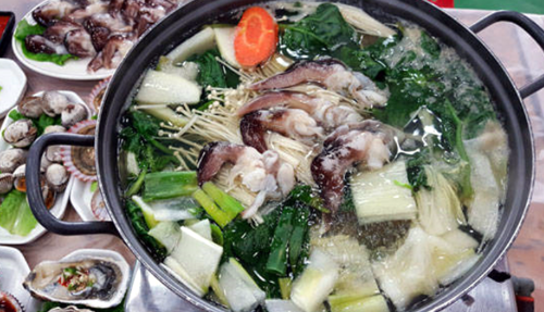 하지만 가장 대중적으로 먹는 방법은 여러 채소를 넣어 끓인 맑은 육수에 데처 먹는 샤부샤부가 유명하며 살집이 크고 부드러운 새조개는 오래 익히면 질겨지고 감칠맛이 빠지기 때문에 살짝 데쳐서 먹는 게 포인트입니다. 담백하고 달짝지근한 감칠맛이 일품입니다.
